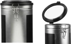 Préfère® Koffiebonen Bewaarbus 1,6L – Koffiepads Bewaarbus – Koffieblikbewaarblik – Zilver/Zwart