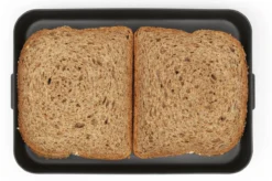 Je lunch meenemen in deze platte Brabantia Make & Take lunchbox is goedkoper, gezonder en makkelijker. Deze platte broodtrommel past precies in het vak van je tas of rugzak. Hij heeft een deksel met clips om maximaal 4 boterhammen veilig op te bergen. Een stijlvol en herbruikbaar alternatief voor plastic zakjes en voorverpakte broodjes. Eet smakelijk!
