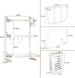 - Robuust en eenvoudig te gebruiken, van top kwaliteit. De organizer is gemaakt van gepoedercoat ijzer. De bijgeleverde siliconen voetsteunen versterkt de stabiele plaatsing van het opbergrek door de antislip werking en biedt bescherming tegen vocht.