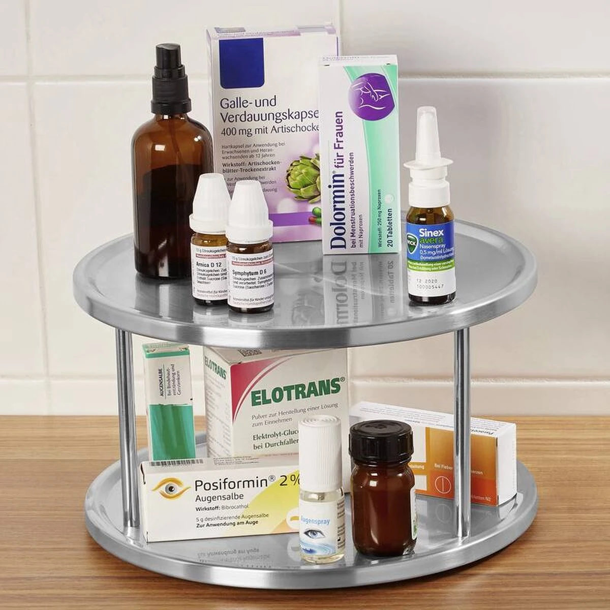Kastrondel met 360° draaibare legplanken brengt meer orde in de kast voor gemakkelijke en snelle toegang ideaal voor specerijen oliën en geneesmiddelen.