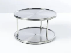 De kastrondel dubbele dekker is een echt opruimingswonder. Met zijn twee legplanken die 360 graden kunnen worden gedraaid biedt het slimme ruimtebesparende rek in een handomdraai flexibele opbergruimte die op verschillende manieren kan worden gebruikt. En het kan gebruikt worden waar je het nodig hebt. De draaimolen demonstreert zijn opruimtalent onder andere in het keukenkastje. Hier kan het roestvrijstalen draaiplateau worden gebruikt om bakingrediĆ«nten specerijen glazen en ander keukengerei te organiseren. Dankzij het dubbeldeks rek is het niet langer nodig de ladder op te klimmen om het meel helemaal achteraan in de kast te bereiken. In plaats daarvan volstaat een snelle draai aan het desbetreffende rek en het gewenste ingrediĆ«nt is binnen handbereik – zonder klimmen of rekken.