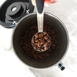 Bij onze voorraadbussen ontvangt u een bijpassend schepje dat bewaard kan worden in de houder aan de buitenkant van het blik. Hierdoor hoeft u geen lepeljes in uw blik te bewaren en is er altijd een schepje in handbereik.