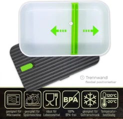 - Robuust & PRAKTISCH: Stevige, lekvrije lunchtrommel Smaakvol met felgroene verdeler voor heerlijke, gezonde maaltijden. Perfect voor school, kantoor, onderweg en op reis.