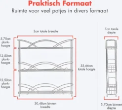 Het kruidenrek is overigens niet alleen ideaal voor kruiden. Hij kan ook gebruikt worden voor het opbergen van bijvoorbeeld nagellakpotjes, het ordenen van medicijnen en wat er ook maar in potjes-vorm komt!