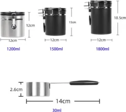 - Toepassingen: geschikt voor het bewaren van droge producten zoals koffiebonen, noten, suiker, poeder etc.