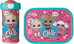 Helemaal klaar voor een nieuwe schooldag met de lunchset voorzien van LOL surprise print van Mepal. Deze handige set bestaat uit een schoolbeker met draaidop en een lunchbox midi, voorzien van bentobox en vorkje. De drinkbeker voor kinderen is gegarandeerd lekvrij en ook makkelijk door kleine kinderhandjes te gebruiken. De bento lunchbox biedt ruimte aan maximaal 4 boterhammen en wordt inclusief bentoboxje en fruitvorkje geleverd. Zo wordt variatie rond de lunch écht kinderspel! Verras jouw zoon of dochter bijvoorbeeld eens met wat snoeptomaatjes tijdens de lunch of geef ze eens een stukje kaas of worst mee. De mogelijkheden worden bijna eindeloos! Dat wordt iedere dag een beetje extra genieten. Extra fijn voor papa en mama: zowel de schoolbeker als de broodtrommel voor kinderen mogen gewoon in de vaatwasser.