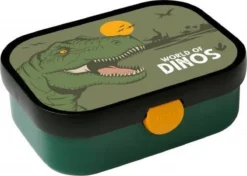 Variatie wordt kinderspel met deze gave lunchbox met Dino print. Je kunt moeiteloos vier boterhammen kwijt in de trommel of je gebruikt het meegeleverde bentobakje voor extra variatie. Zo wordt iedere lunch een feestje!