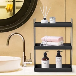 Merkloos 3 Tier Staande Planken Keuken Onder Kast Plank Douche Plank Badkamer Werkblad Organizer Ijdelheid Lade Cosmetica & Make-up Opslag Kruidenrek Zwart
