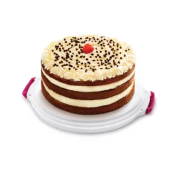 Metaltex Dolceforno Verstelbare vershouddoos voor taarten. De transparante taartdoos heeft een hoogte van 80mm en is verstelbaar tot een hoogte van 150mm. De diameter van de taartdoos is 36cm.