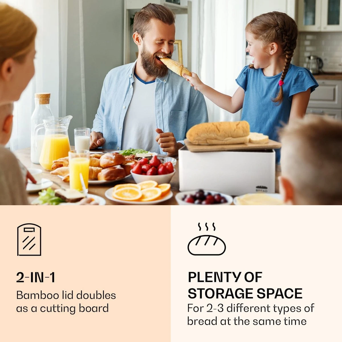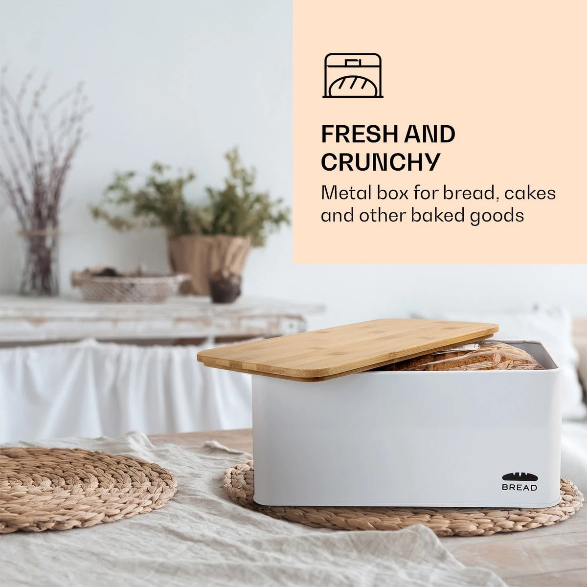 Hoogwaardige opbergbox met praktische snijplank: De Oklahoma broodtrommel van Klarstein zorgt voor constant vers en knapperig broodgenot.