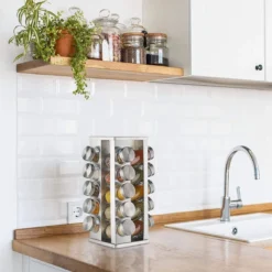 Draaibaar kruidenrek inclusief 20 potjes voor een scherpe prijs. Pleasantwork biedt een stevig kruidenrek aan met een strak design, gemaakt van RVS. Dit zorgt ervoor dat het product sterk en goed te onderhouden is. Op de tafel, in de keuken, overal kan het neergezet worden. Door het soepele draaien van het rek is het gemakkelijk om van elke kant een potje te pakken of terug te plaatsen. Naast het rek en de potjes is er een vel stickers toegevoegd met 24 verschillende kruidennamen die u op de deksel van het potje kunt plakken. Zo is het overzichtelijk welke kruiden waar in het rek staan.