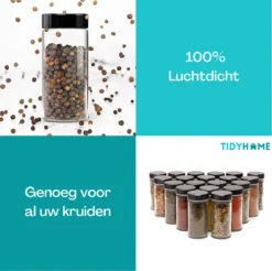 - 20 Kruidenpotjes van glas en zwarte deksel