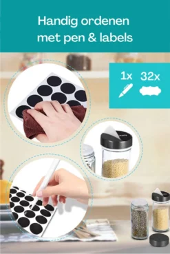 Om ervoor te zorgen dat jij de kruiden niet door elkaar haalt, zitten er 36 stickers met stift in de set. Zo kun jij je favoriete kruiden organiseren naar je eigen wensen! Daarnaast beschikt de set over een trechter, zodat de potjes eenvoudig te vullen zijn.