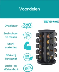 Heb jij ook behoefte aan meer overzicht in je keuken? Ben je het zat om niet de juiste kruiden te kunnen vinden? Dan is het TidyHome Kruidenrek hier de ideale oplossing voor!